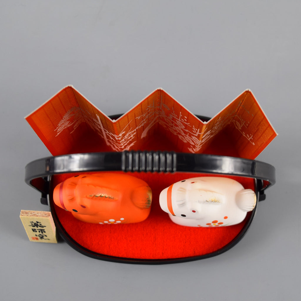 2026 Japanese Zodiac Horse Ceramic Ornament (57 White & Pink basket)