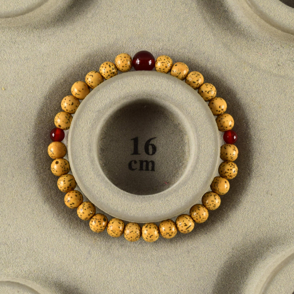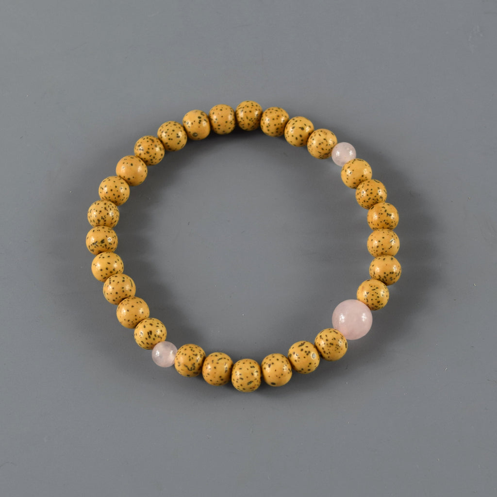Bodhi Tree Wood & Red Agate / Rose quartz Eye Bracelet