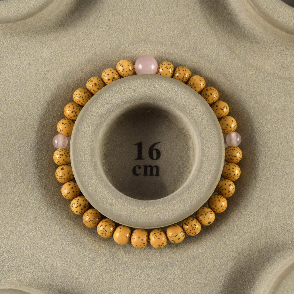 7mm Bodhi Seed Wood & Red agate / Rose quartz Bracelet