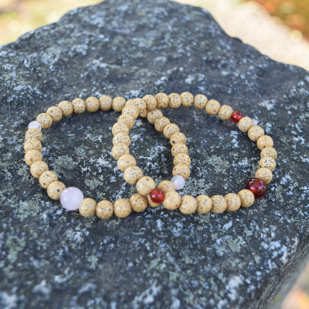 7mm Bodhi Seed Wood & Red agate /  Rose quartz Bracelet