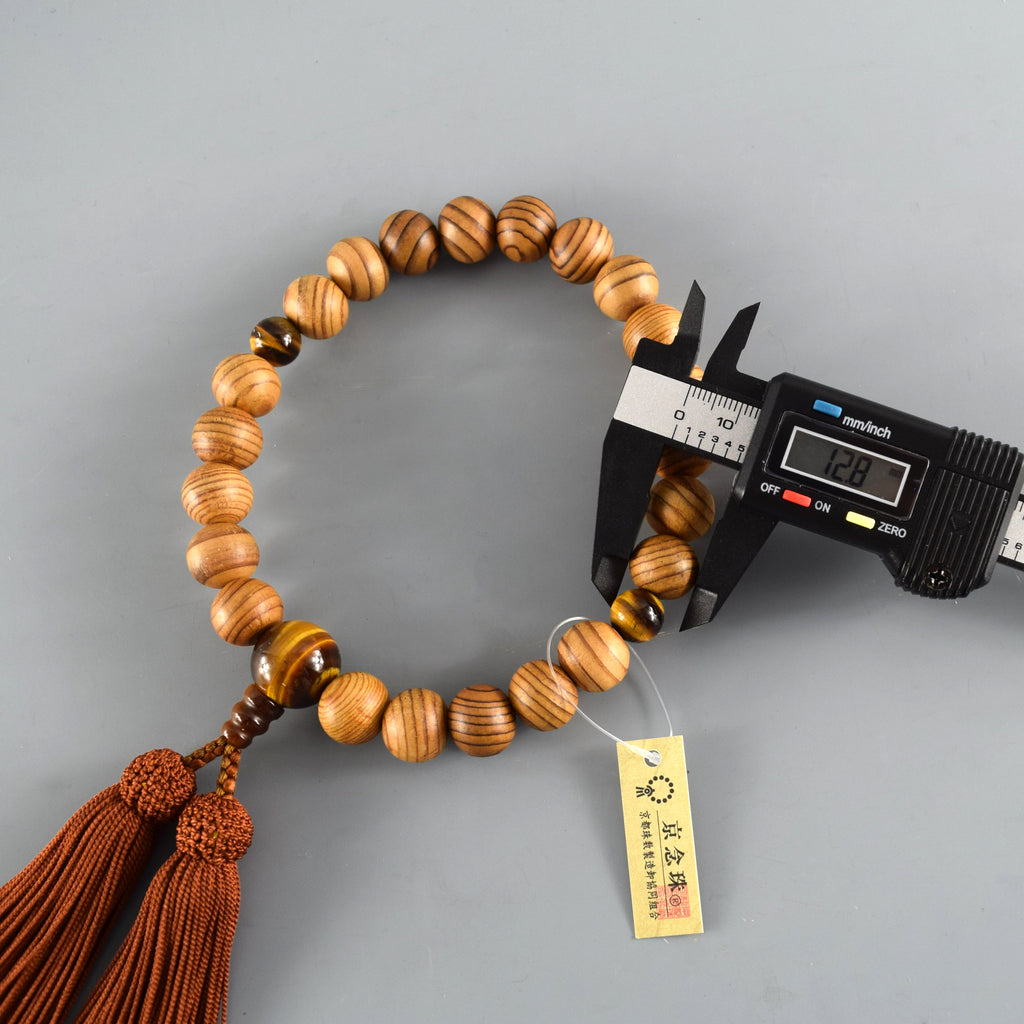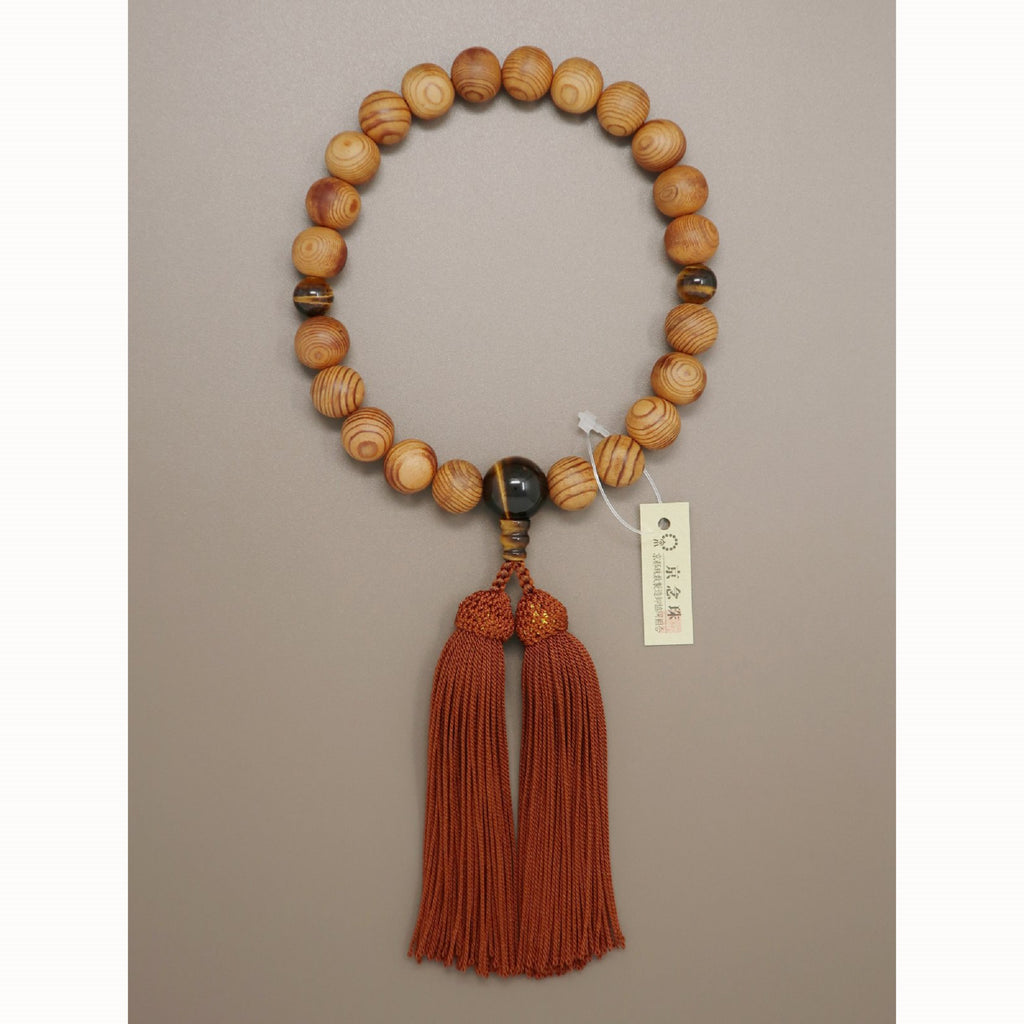 Japanese Yakusugi Cedar Wood & Brown Tiger eye Beads Juzu One-handed Prayer beads