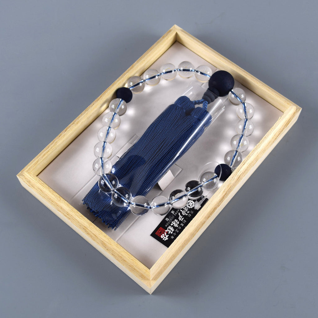 8mm/12mm Japanese Crystal Quartz & Aizen Indigo Wild Cherry Tree Wood Juzu Prayer Beads