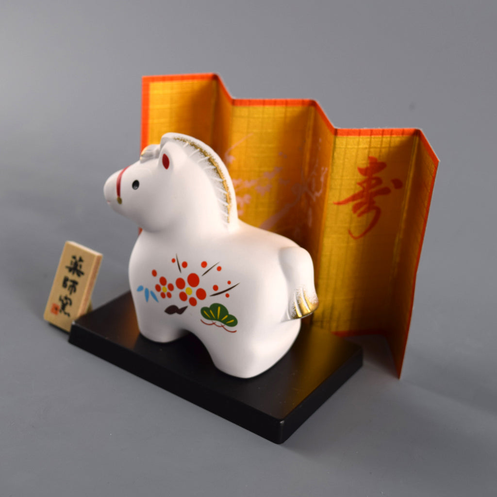 2026年 招福 馬年 干支午 新年 薬師窯 置物 24 錦彩招福午(松竹梅)
