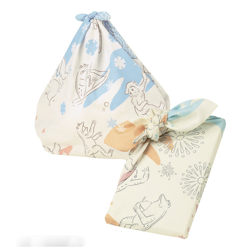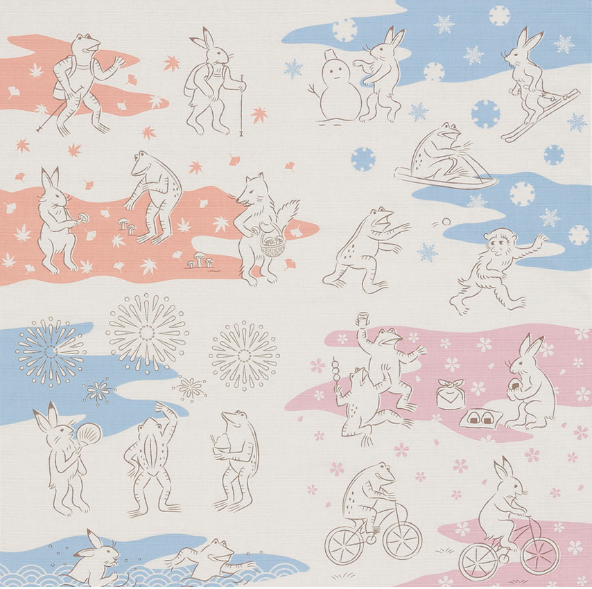 18-5111-15風呂敷 ふろしき くらしの布 鳥獣戯画 春夏秋冬 綿100% 50cm×50cm 75cm×75cm