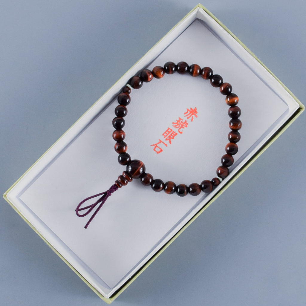 6mm 青/赤/茶/白 虎眼石 四色 腕輪 ボサ付き 京都 天然石 数珠