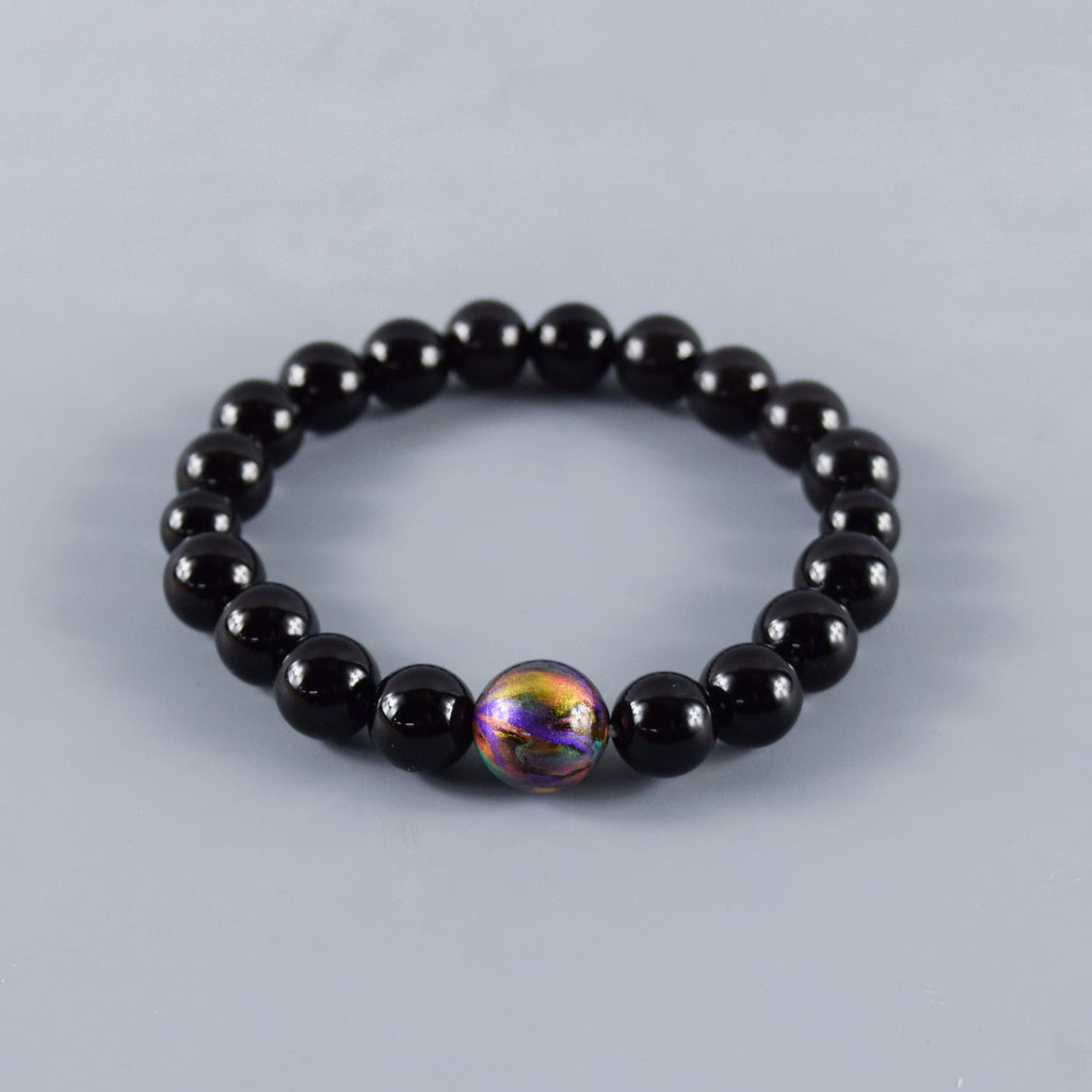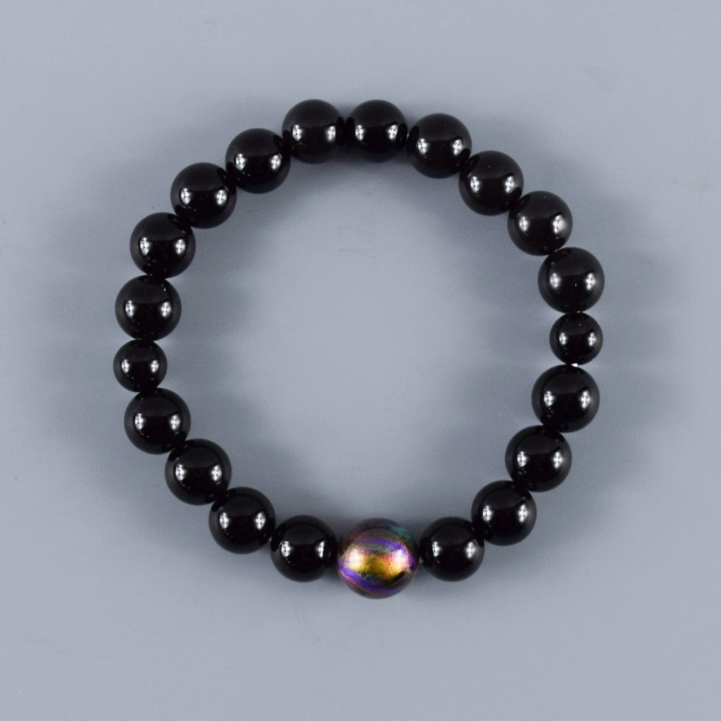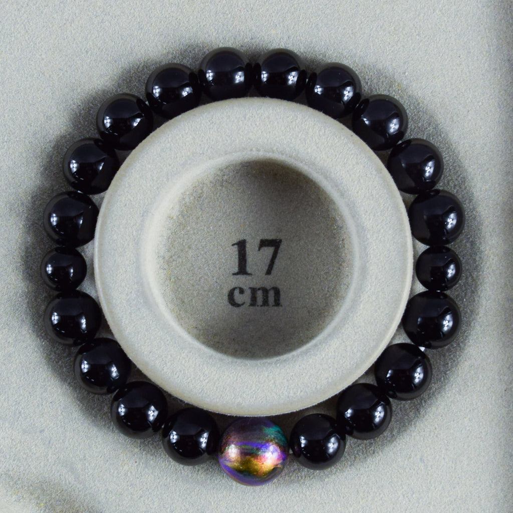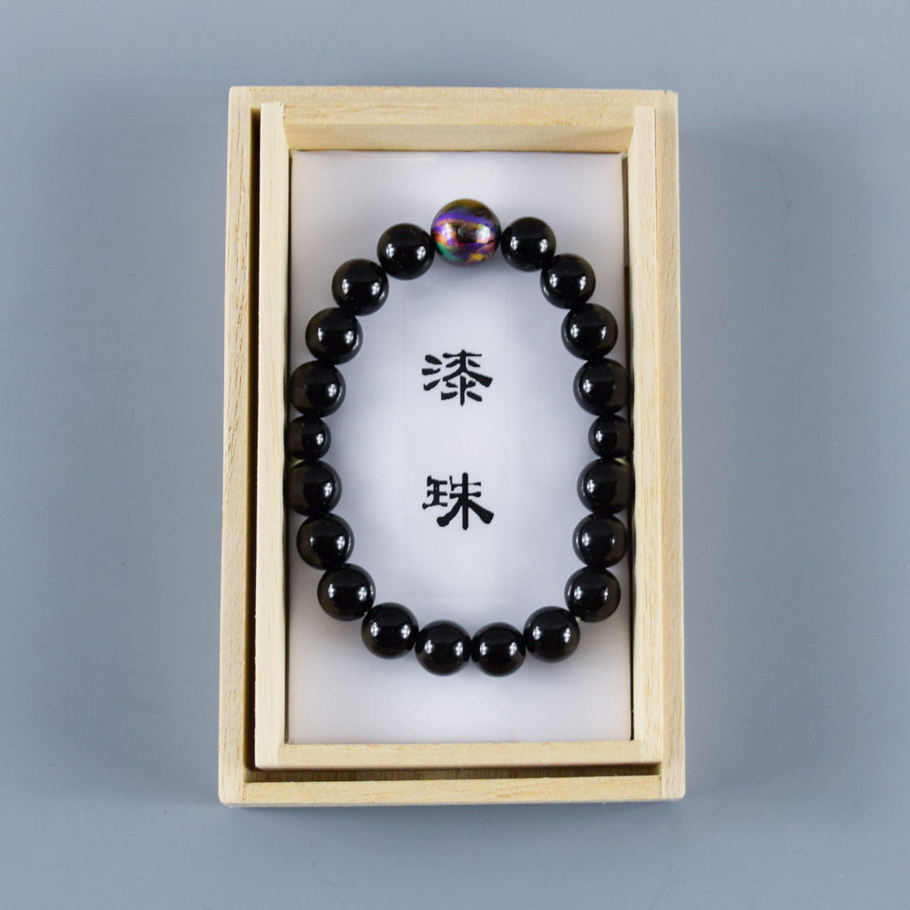 In addition to the lacquer beads, this bracelet is also accented with black onyx beads. The solemn elegance and subtle luster of the black onyx perfectly balance the vibrance of the lacquer, further highlighting the unique prominence of the main beads.