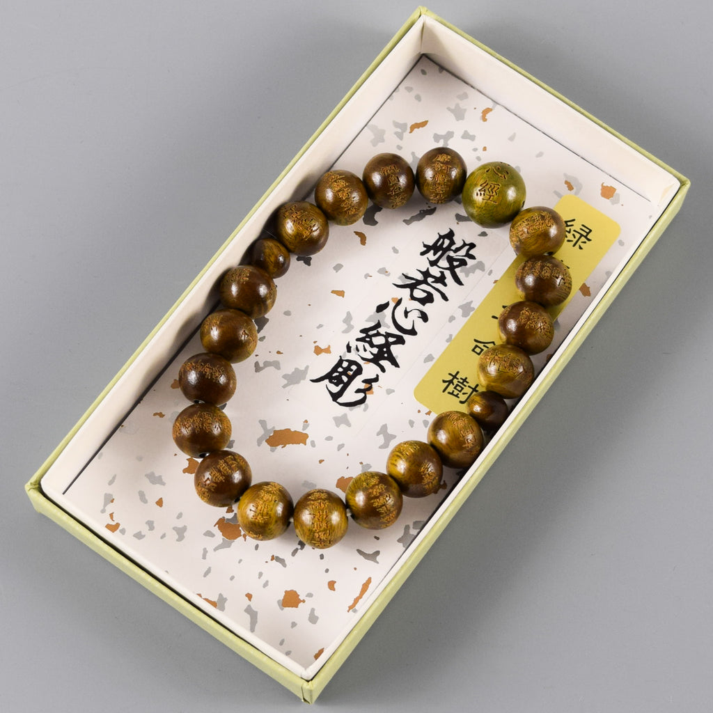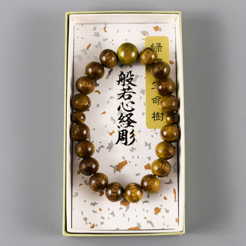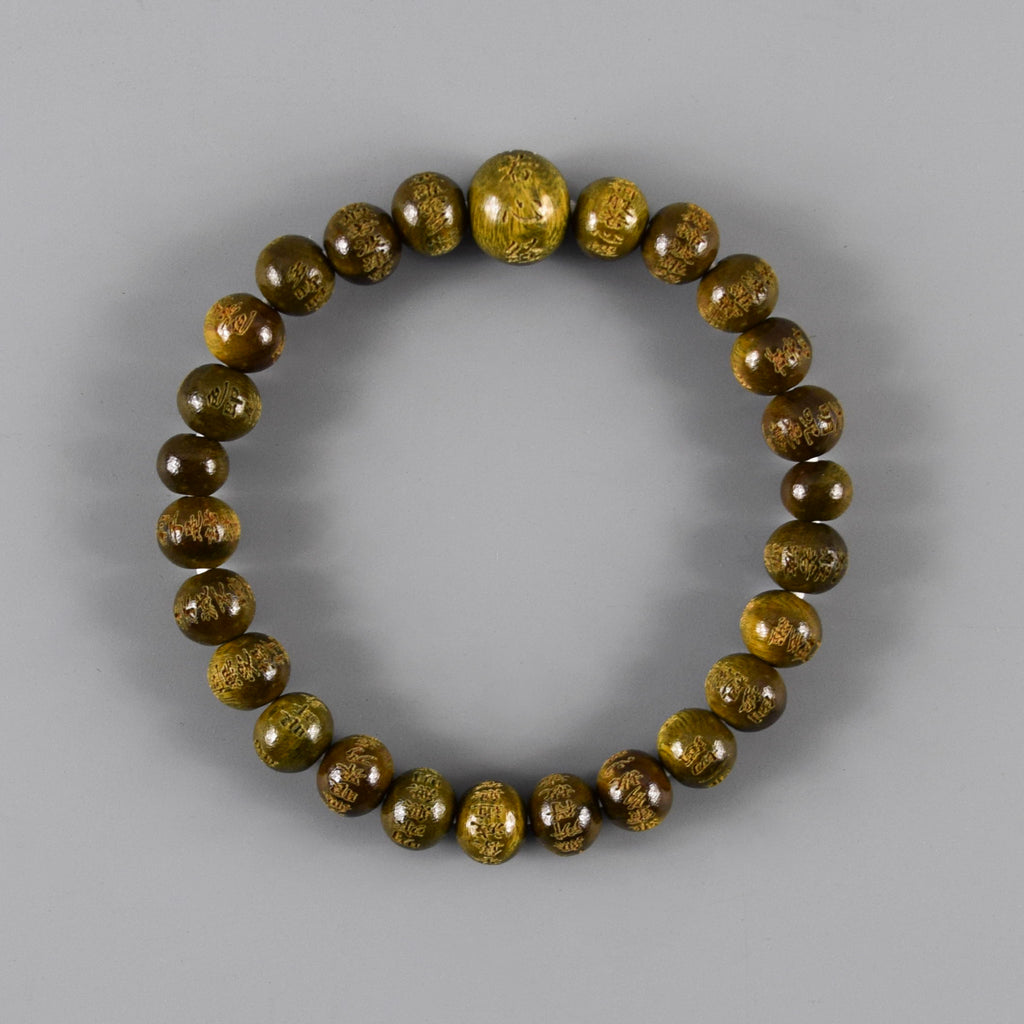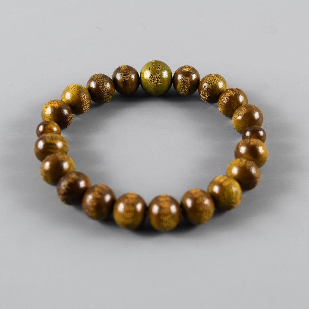 UDA201-8Lignum vitae wood With Heart Sutra Carved Beads Bracelet