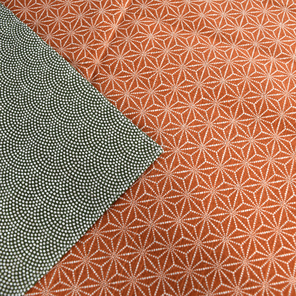 Color : Deep Red × Navy Blue / Navy Blue × Green / Green × Orange                                Pattern: samekomon (shark skin) on the front, Asagata (hemp leaves) on the back. Suitable as a book cover or as a pouch.