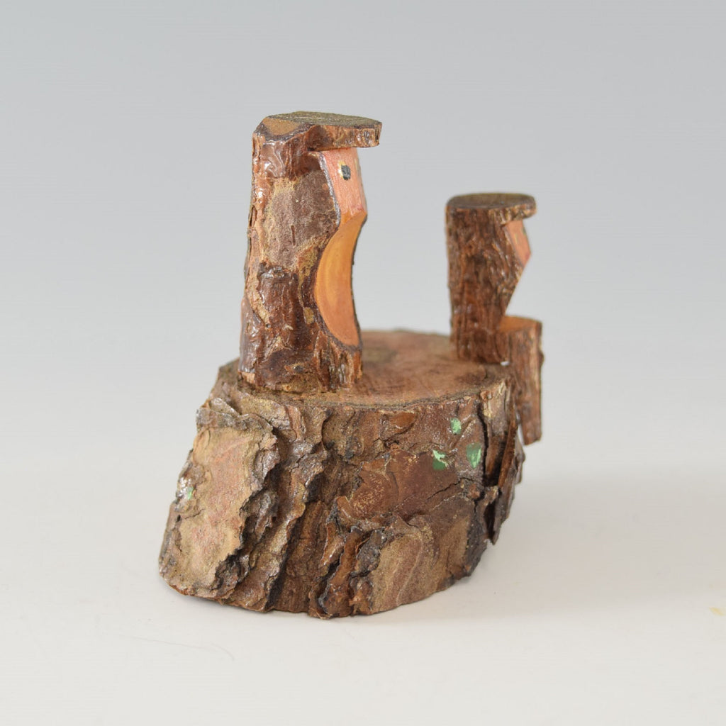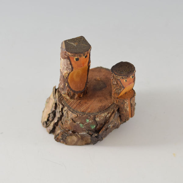 This is a cute ornament of two monkeys on a tree stump.