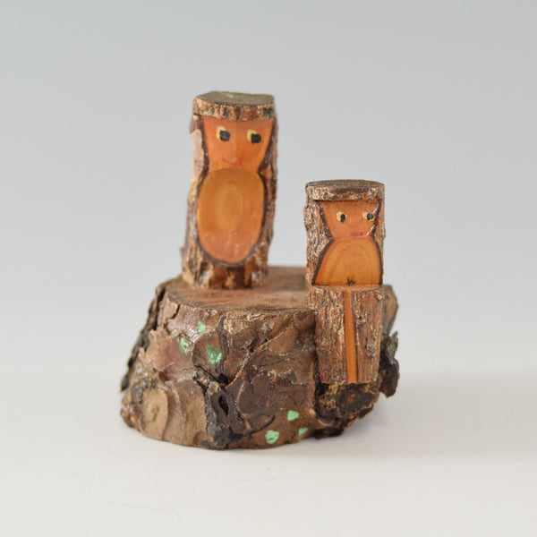 Japanese traditional wood tree stump with monkey ornament charm home decoration